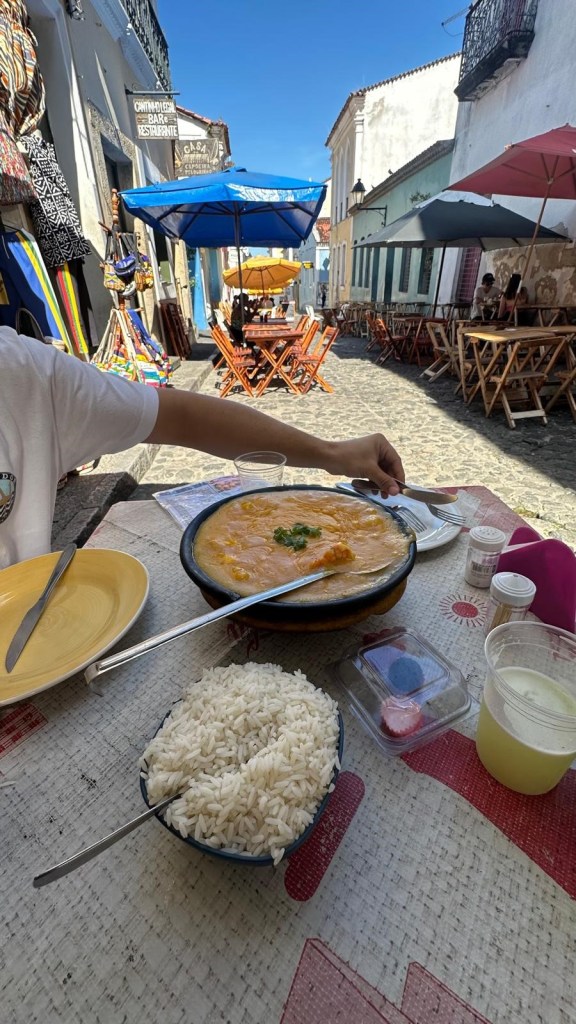 From the very beginning, my classmates made me feel at home. They invited me into their houses for feijoadas, the beloved black bean and meat stew traditionally served on weekends. Over shared meals, I got to enjoy Salvador’s bold, West African-influenced cuisine—moqueca, a fragrant shrimp stew simmered in coconut milk and plam oil; acarajé, crispy black-eyed pea fritters filled with shrimp; vatapá, a rich, peanut-based dish; and farofa, toasted cassava flour that accompanied nearly every plate.